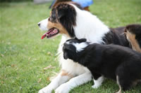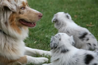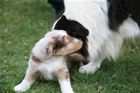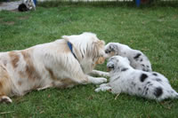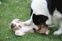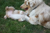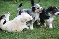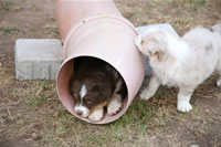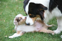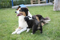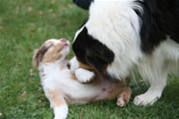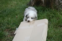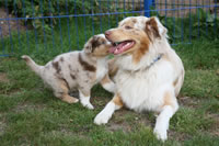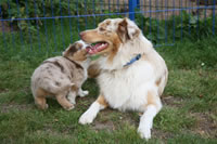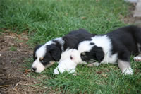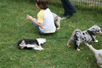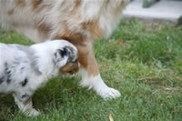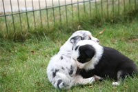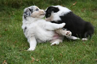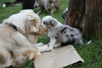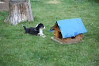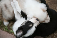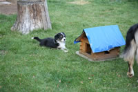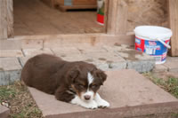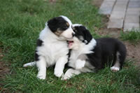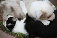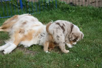 Bald bekommen sie nun ein Halsband und werden die ersten Gassigehversuche im Garten machen... . |