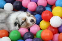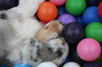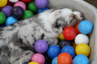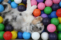 Das Bällebad eigenet sich auch zum Schlafen... und Zeitungen, alte Strümpfe und vieles mehr muss sich einer Zerreißprobe unterziehen....